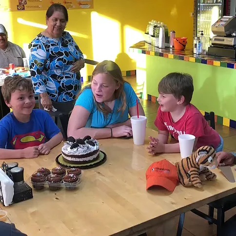 So we get there for his dinner and Gabby came out with this cake for him! Then Paula came out with cupcakes and we all sang Happy Birthday to him! I was soooo fun. It was also so sweet cause Gabby and Hugo love the kids like their own. He had such a great birthday.