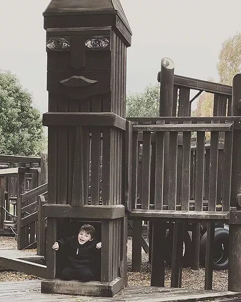 Then we left and went to Tricentennial playground. It is a really cool wooden playground in a neighborhood that Ken and Amy live by.