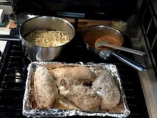 So for all of you wondering what I can make in my teeny tiny oven well let me just tell you after this dinner I think I can make just about anything. For dinner Alima and I made Chicken Cordon Blu and it was mighty tasty. It was all gone and everyone asked for me to make it again!
