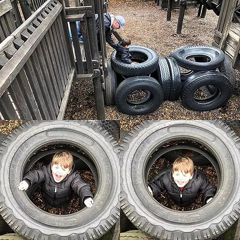 If you don’t share your sandwich with Papa Ken at lunch he might drop you in the tire bridge and you wont be able to get out. Hahahaha! I may have laughed a little to long before we helped him out.