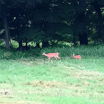 Our land has a barn, some wooded area as well as a pond. We are so excited to see all the wildlife that comes onto our property. So far we have seen many wild turkeys, deer and a few skunks.